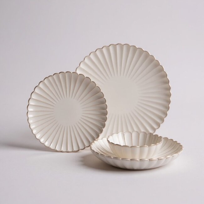 Create a stylish table setting with the Bloomy 24-piece dinnerware set. Suitable for 6 people, the Bloomy set includes 6 soup bowls, 6 dinner plates, 6 deep plates, and 6 dessert plates.