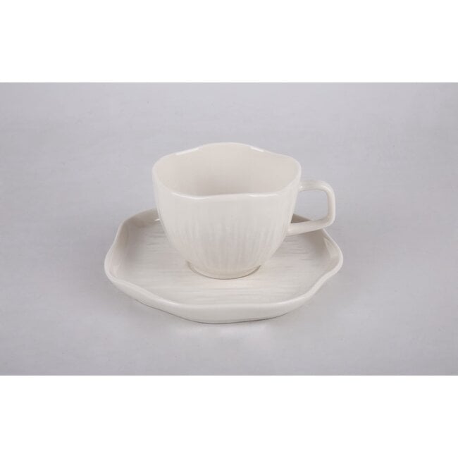 • Unique organic shape of cups and saucers