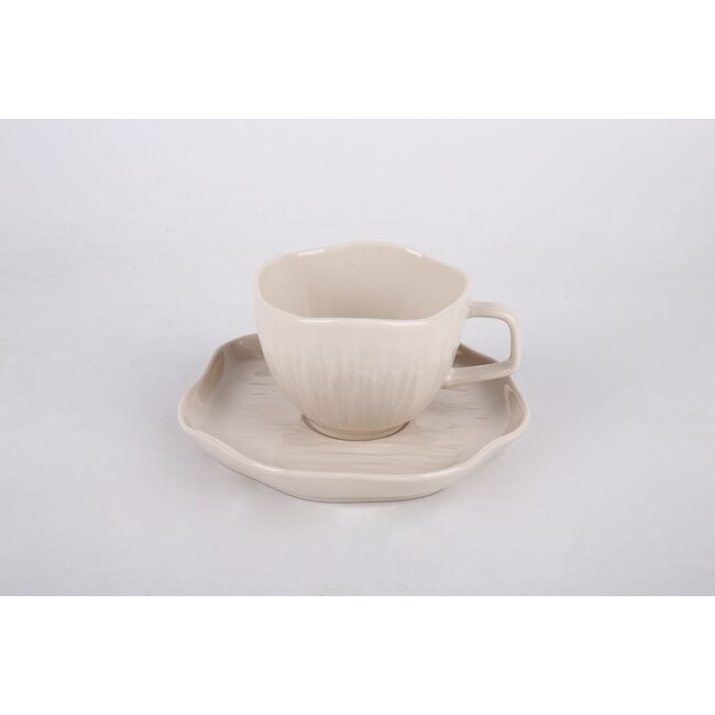 Cermico beige koffie kopjes 6 persoons, 12-delig